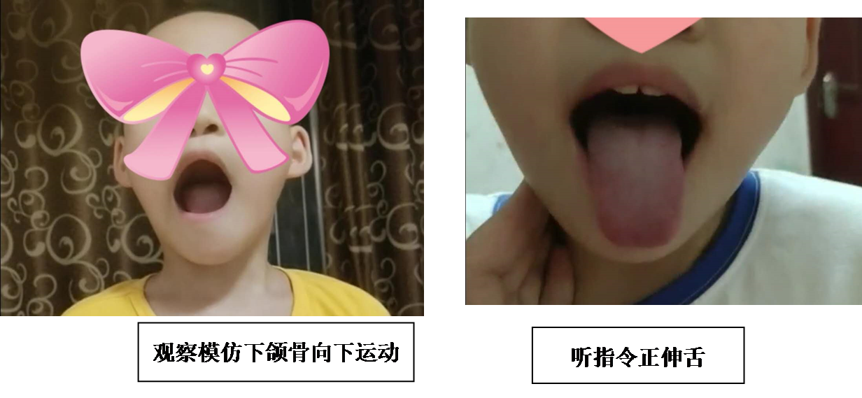(2)孩子能正确模仿口型,有声音,但声音小(气息微弱,发声时声带未能产生振动),口肌训练是必要的。
